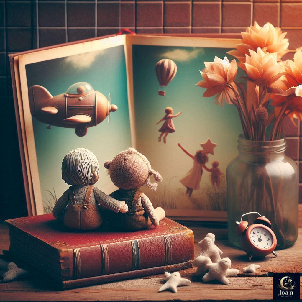 «Crea una imagen nostálgica y emotiva que represente la amistad y los recuerdos de la infancia. La escena debe incluir: