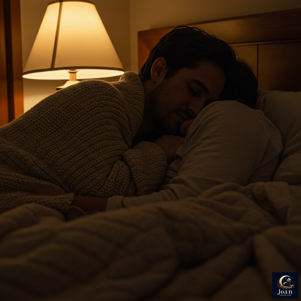 «Crea una imagen íntima y evocadora que capture la atmósfera del poema ‘El Santuario de la Piel Compartida’. Visualiza una escena tenue y suavemente iluminada, quizás por la luz de la luna o una lámpara cálida, donde dos figuras humanas estén abrazadas o muy cerca, sin mostrar detalles explícitos. Enfócate en la conexión táctil y la sensación de refugio y comodidad. Utiliza texturas suaves y colores cálidos y terrosos para transmitir la intimidad y la calidez del momento. Incorpora elementos que sugieran la cotidianidad y la sencillez del amor, como una manta suave o la silueta de un espacio acogedor en segundo plano. La composición debe transmitir una sensación de paz, seguridad y el profundo deseo de cercanía.»